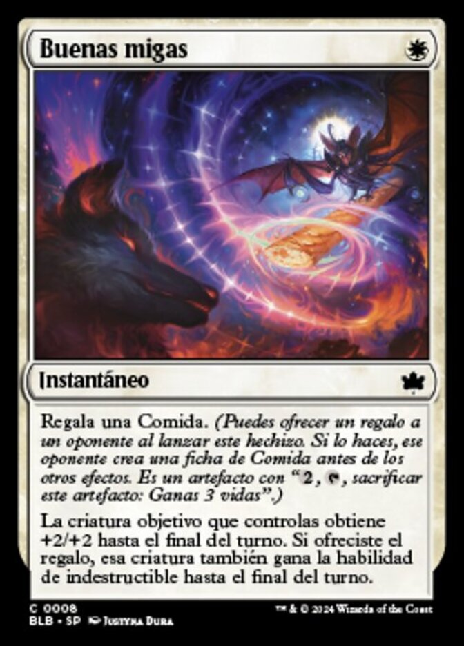 | Rules | Gift a Food (You may promise an opponent a gift as you cast this spell. If you do, they create a Food token before its other effects. It's an artifact with ", , Sacrifice this artifact: You gain 3 life.") Target creature you control gets +2/+2 until end of turn. If the gift was promised, that creature also gains indestructible until end of turn. |
