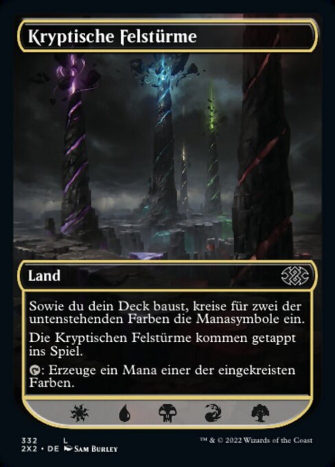 | Rules | As you create your deck, circle two of the colors below. Cryptic Spires enters the battlefield tapped. : Add one mana of either of the circled colors. |
