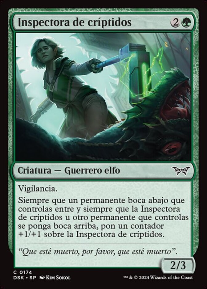 | Rules | Vigilance Whenever a face-down permanent you control enters and whenever Cryptid Inspector or another permanent you control is turned face up, put a +1/+1 counter on Cryptid Inspector. |