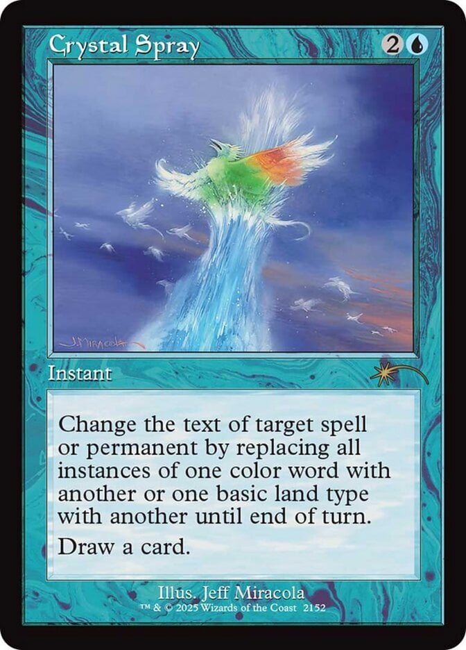 Rules | Change the text of target spell or permanent by replacing all instances of one color word with another or one basic land type with another until end of turn. Draw a card. |