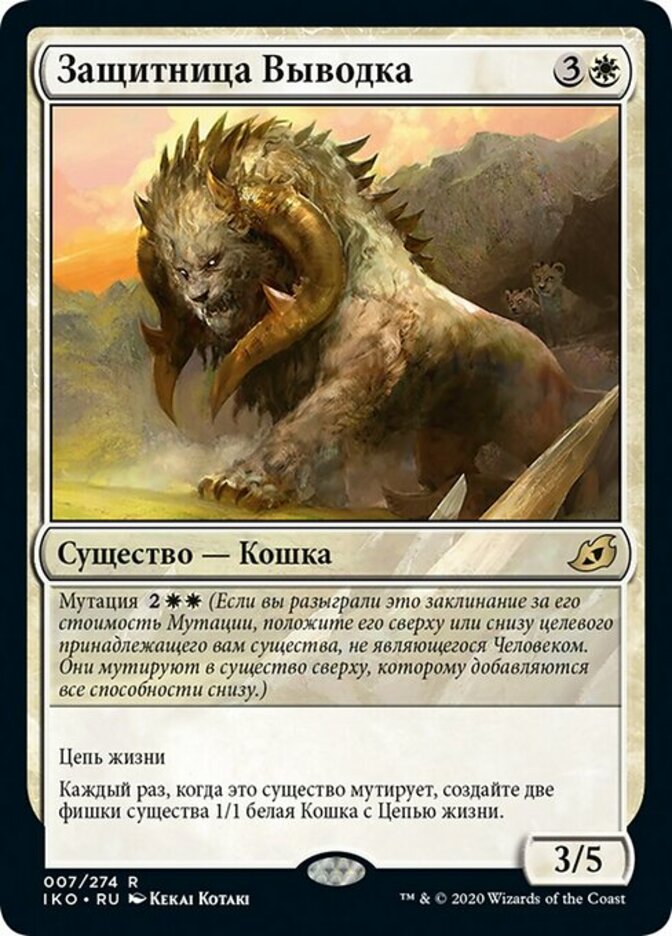 | Rules | Mutate (If you cast this spell for its mutate cost, put it over or under target non-Human creature you own. They mutate into the creature on top plus all abilities from under it.) Lifelink Whenever this creature mutates, create two 1/1 white Cat creature tokens with lifelink. |