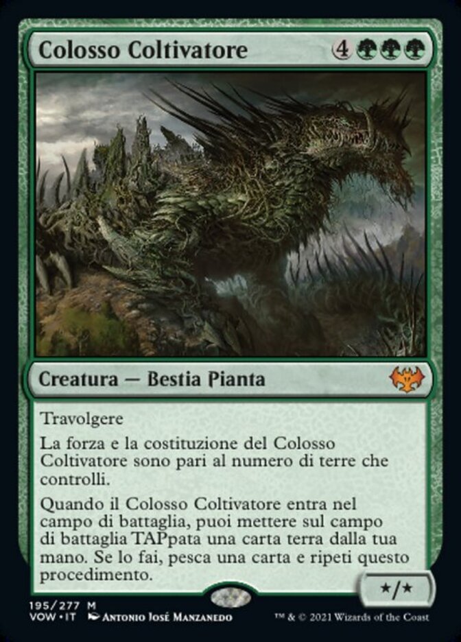 | Rules | Trample Cultivator Colossus's power and toughness are each equal to the number of lands you control. When Cultivator Colossus enters the battlefield, you may put a land card from your hand onto the battlefield tapped. If you do, draw a card and repeat this process. |
