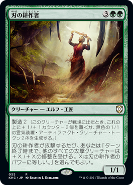 | Rules | Fabricate 2 (When this creature enters the battlefield, put two +1/+1 counters on it or create two 1/1 colorless Servo artifact creature tokens.) Whenever Cultivator of Blades attacks, you may have other attacking creatures get +X/+X until end of turn, where X is Cultivator of Blades's power. |