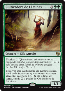| Rules | Fabricate 2 (When this creature enters the battlefield, put two +1/+1 counters on it or create two 1/1 colorless Servo artifact creature tokens.) Whenever Cultivator of Blades attacks, you may have other attacking creatures get +X/+X until end of turn, where X is Cultivator of Blades's power. |