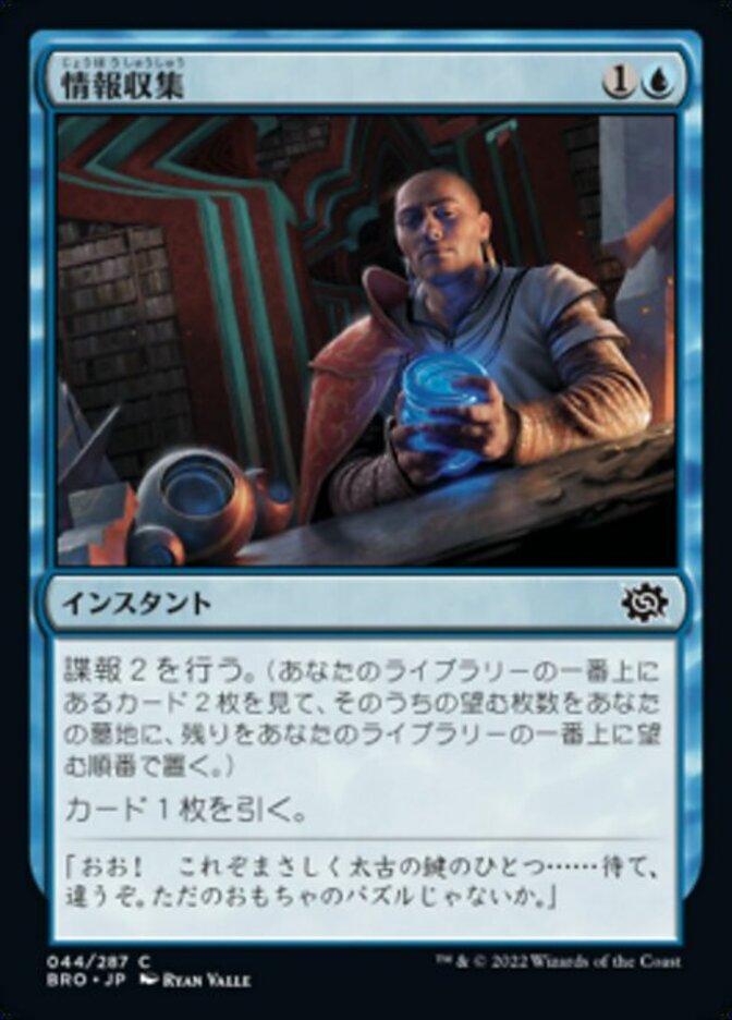 | Rules | Look at the top two cards of your library. Put any number of them into your graveyard and the rest back on top of your library in any order. Draw a card. |