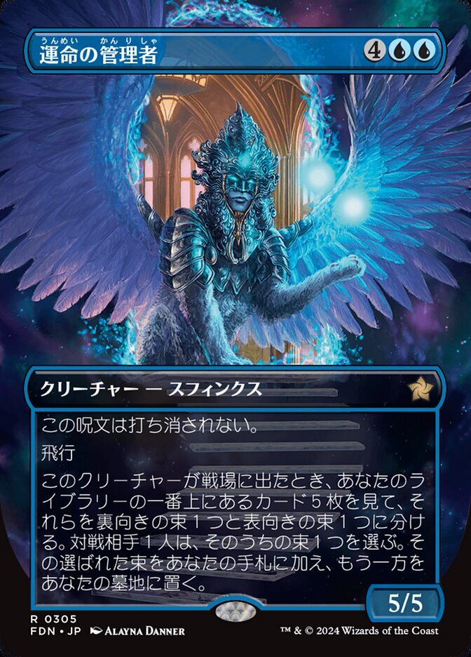 | Rules | This spell can't be countered. Flying When this creature enters, look at the top five cards of your library and separate them into a face-down pile and a face-up pile. An opponent chooses one of those piles. Put that pile into your hand and the other into your graveyard. |