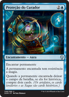 | Rules | Enchant permanent Enchanted permanent has hexproof. When enchanted permanent leaves the battlefield, if it was historic, draw two cards. (Artifacts, legendaries, and Sagas are historic.) |