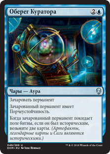 | Rules | Enchant permanent Enchanted permanent has hexproof. When enchanted permanent leaves the battlefield, if it was historic, draw two cards. (Artifacts, legendaries, and Sagas are historic.) |