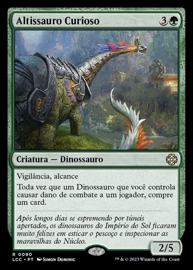 | Rules | Vigilance, reach Whenever a Dinosaur you control deals combat damage to a player, draw a card. |