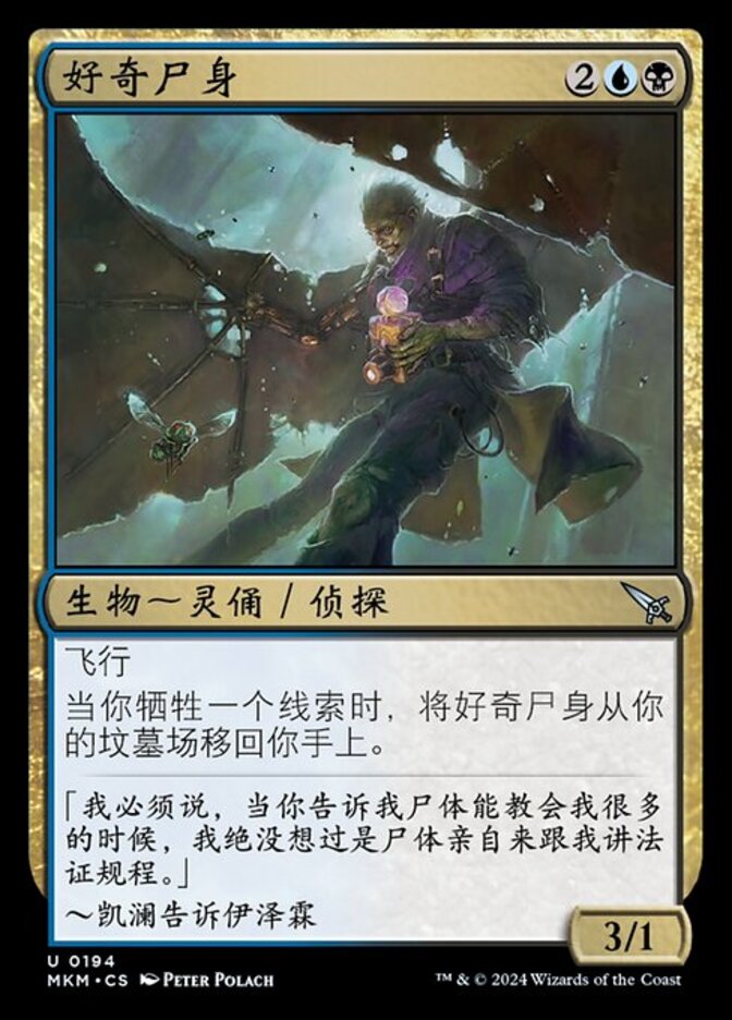 | Rules | Flying When you sacrifice a Clue, return Curious Cadaver from your graveyard to your hand. |