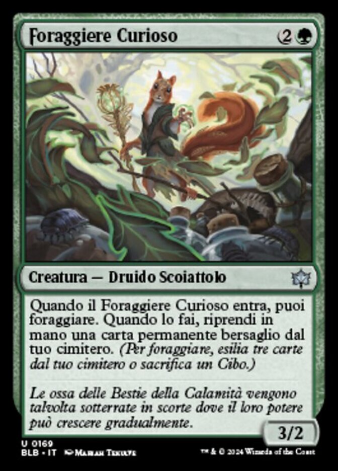 | Rules | When Curious Forager enters, you may forage. When you do, return target permanent card from your graveyard to your hand. (To forage, exile three cards from your graveyard or sacrifice a Food.) |