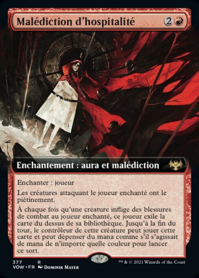 | Rules | Enchant player Creatures attacking enchanted player have trample. Whenever a creature deals combat damage to enchanted player, that player exiles the top card of their library. Until end of turn, that creature's controller may play that card and they may spend mana as though it were mana of any color to cast that spell. |