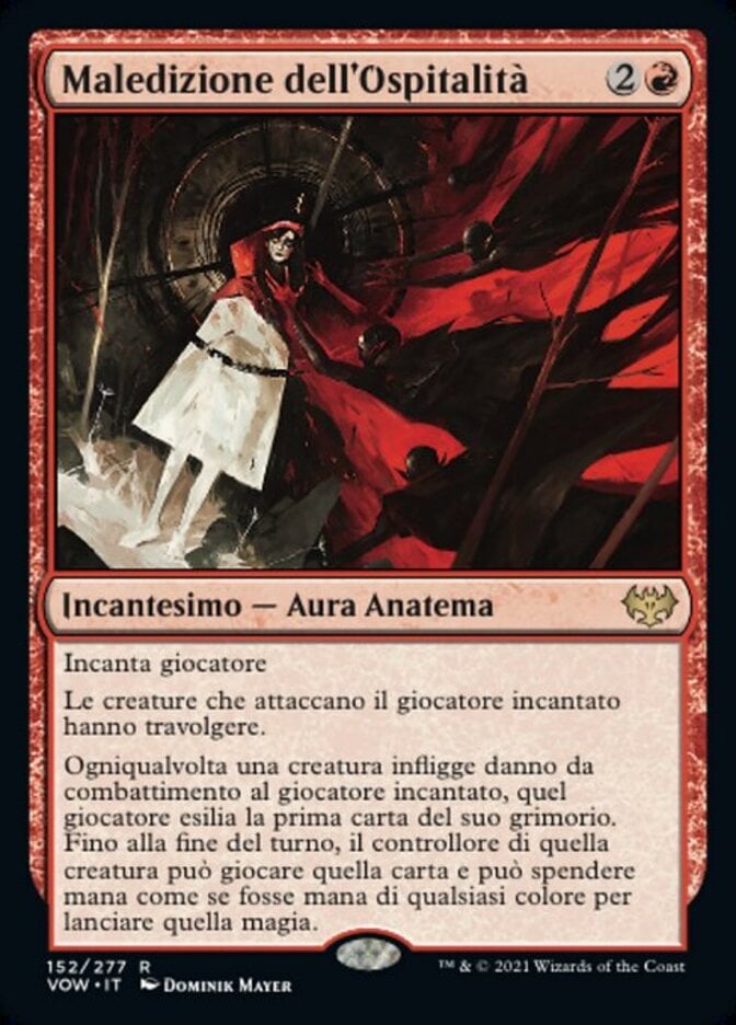 | Rules | Enchant player Creatures attacking enchanted player have trample. Whenever a creature deals combat damage to enchanted player, that player exiles the top card of their library. Until end of turn, that creature's controller may play that card and they may spend mana as though it were mana of any color to cast that spell. |