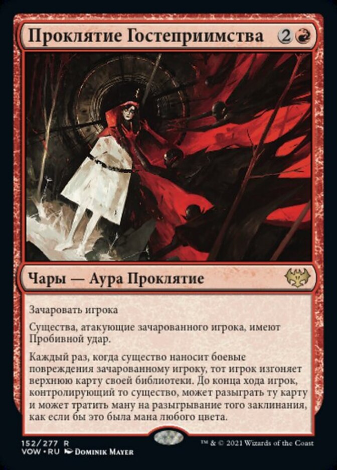| Rules | Enchant player Creatures attacking enchanted player have trample. Whenever a creature deals combat damage to enchanted player, that player exiles the top card of their library. Until end of turn, that creature's controller may play that card and they may spend mana as though it were mana of any color to cast that spell. |