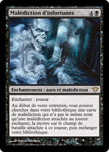 | Rules | Enchant player At the beginning of your upkeep, you may search your library for a Curse card that doesn't have the same name as a Curse attached to enchanted player, put it onto the battlefield attached to that player, then shuffle. |