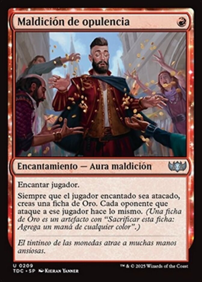 | Rules | Enchant player Whenever enchanted player is attacked, create a Gold token. Each opponent attacking that player does the same. (A Gold token is an artifact with "Sacrifice this artifact: Add one mana of any color.") |