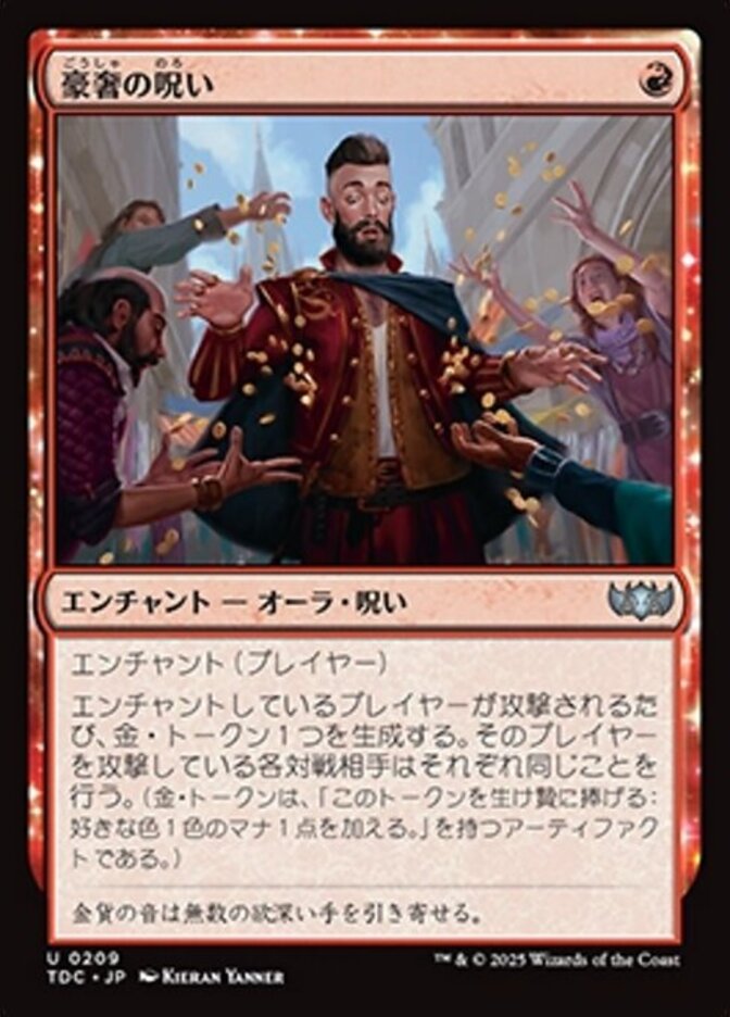 | Rules | Enchant player Whenever enchanted player is attacked, create a Gold token. Each opponent attacking that player does the same. (A Gold token is an artifact with "Sacrifice this artifact: Add one mana of any color.") |