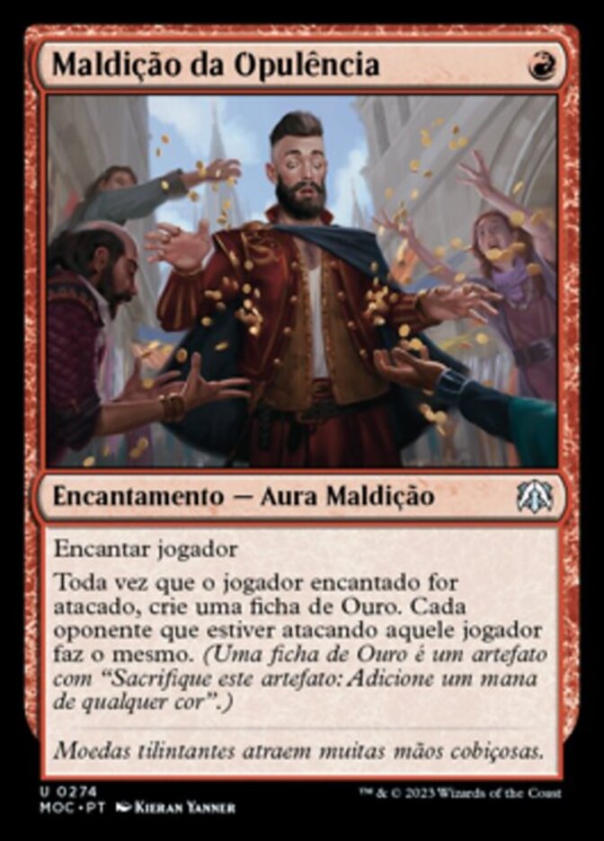 | Rules | Enchant player Whenever enchanted player is attacked, create a Gold token. Each opponent attacking that player does the same. (A Gold token is an artifact with "Sacrifice this artifact: Add one mana of any color.") |