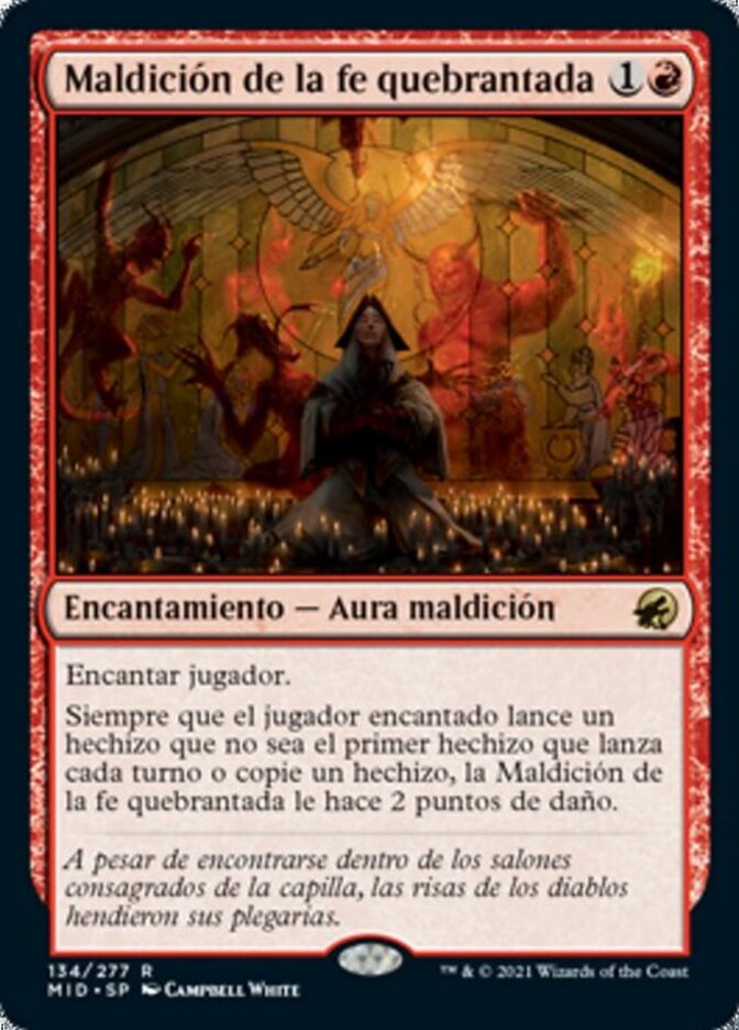 | Rules | Enchant player Whenever enchanted player casts a spell other than the first spell they cast each turn or copies a spell, Curse of Shaken Faith deals 2 damage to them. |