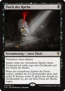 | Rules | Enchant player Whenever enchanted player casts a spell, put a spite counter on Curse of Vengeance. When enchanted player loses the game, you gain X life and draw X cards, where X is the number of spite counters on Curse of Vengeance. |
