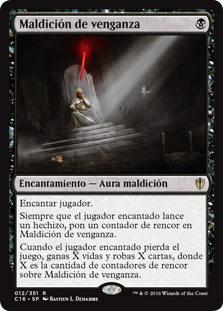 | Rules | Enchant player Whenever enchanted player casts a spell, put a spite counter on Curse of Vengeance. When enchanted player loses the game, you gain X life and draw X cards, where X is the number of spite counters on Curse of Vengeance. |