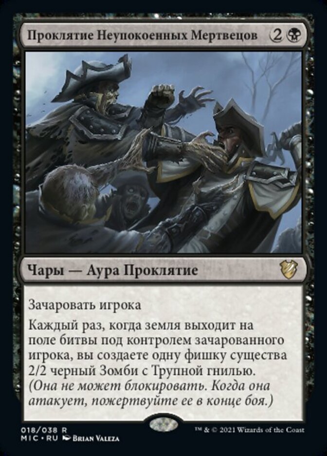 | Rules | Enchant player Whenever a land enters the battlefield under enchanted player's control, you create a 2/2 black Zombie creature token with decayed. (It can't block. When it attacks, sacrifice it at end of combat.) |
