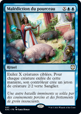 | Rules | Exile X target creatures. For each creature exiled this way, its controller creates a 2/2 green Boar creature token. |