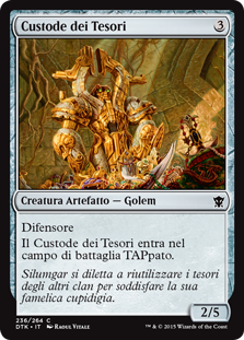 | Rules | Defender Custodian of the Trove enters the battlefield tapped. |