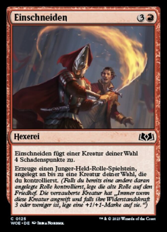 | Rules | Cut In deals 4 damage to target creature. Create a Young Hero Role token attached to up to one target creature you control. (If you control another Role on it, put that one into the graveyard. Enchanted creature has "Whenever this creature attacks, if its toughness is 3 or less, put a +1/+1 counter on it.") |