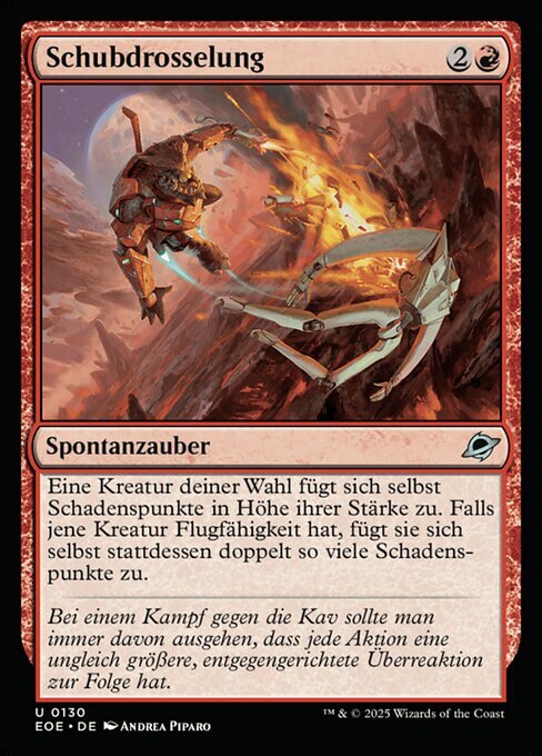 | Rules | Target creature deals damage to itself equal to its power. If that creature has flying, it deals twice that much damage to itself instead. |