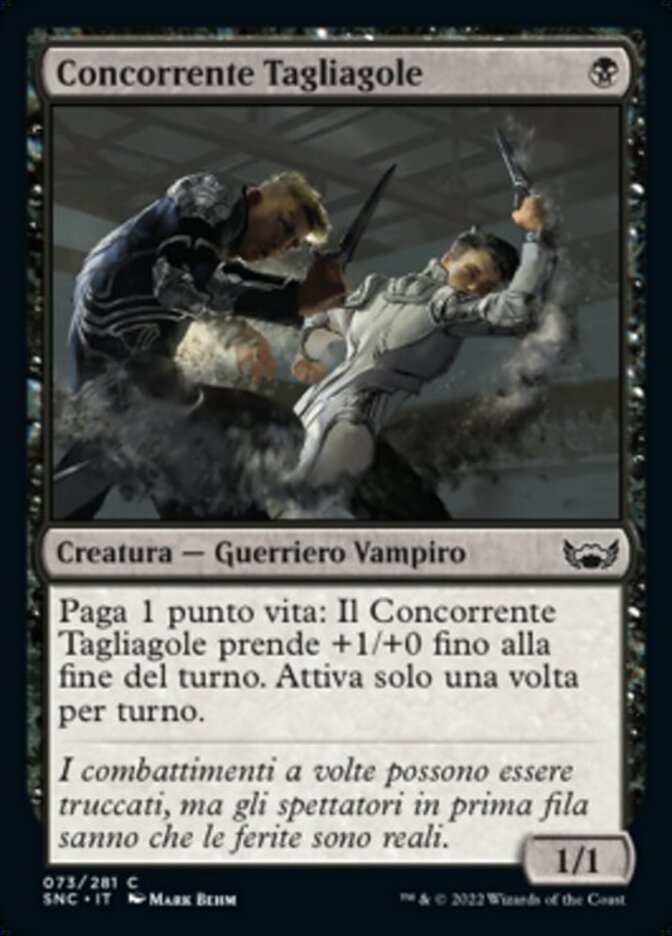 | Rules | Pay 1 life: Cutthroat Contender gets +1/+0 until end of turn. Activate only once each turn. |