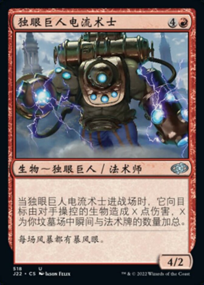 | Rules | When Cyclops Electromancer enters the battlefield, it deals X damage to target creature an opponent controls, where X is the number of instant and sorcery cards in your graveyard. |