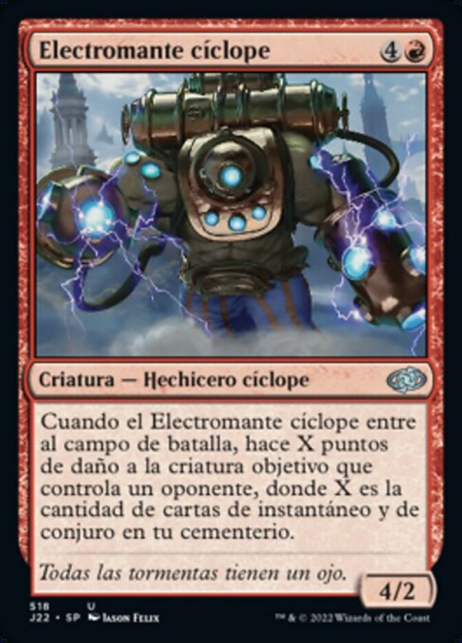 | Rules | When Cyclops Electromancer enters the battlefield, it deals X damage to target creature an opponent controls, where X is the number of instant and sorcery cards in your graveyard. |