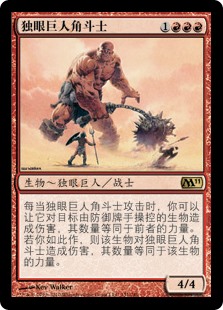 | Rules | Whenever Cyclops Gladiator attacks, you may have it deal damage equal to its power to target creature defending player controls. If you do, that creature deals damage equal to its power to Cyclops Gladiator. |