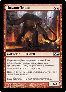 | Rules | Intimidate (This creature can't be blocked except by artifact creatures and/or creatures that share a color with it.) Cyclops Tyrant can't block creatures with power 2 or less. |