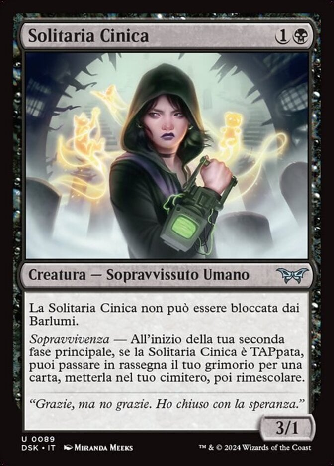 | Rules | Cynical Loner can't be blocked by Glimmers. Survival — At the beginning of your second main phase, if Cynical Loner is tapped, you may search your library for a card, put it into your graveyard, then shuffle. |