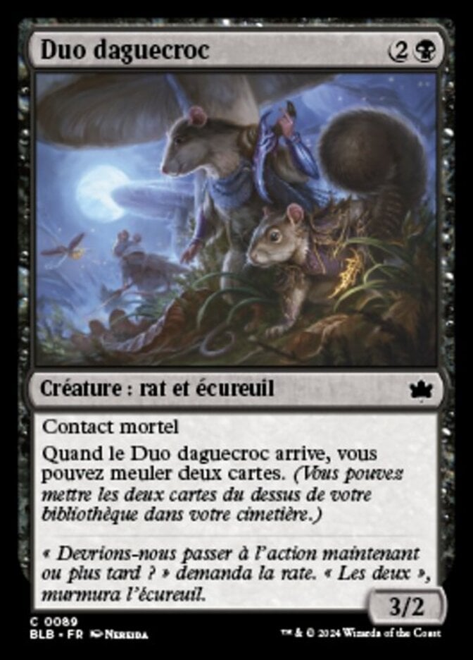 | Rules | Deathtouch When Daggerfang Duo enters, you may mill two cards. (You may put the top two cards of your library into your graveyard.) |