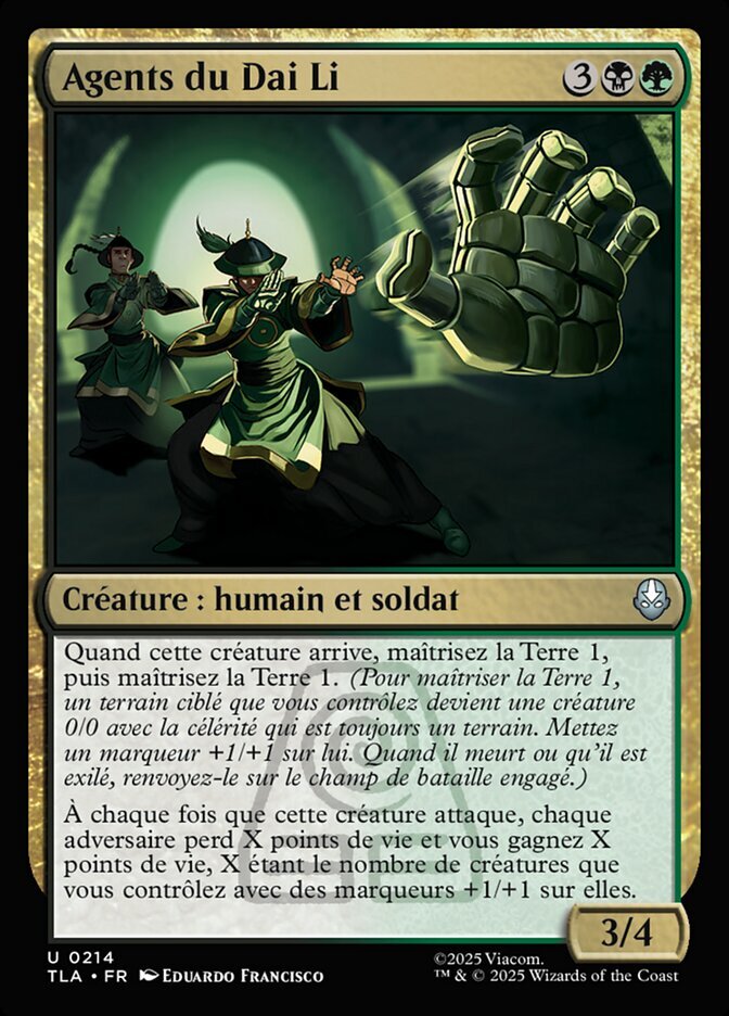 | Rules | When this creature enters, earthbend 1, then earthbend 1. (To earthbend 1, target land you control becomes a 0/0 creature with haste that's still a land. Put a +1/+1 counter on it. When it dies or is exiled, return it to the battlefield tapped.) Whenever this creature attacks, each opponent loses X life and you gain X life, where X is the number of creatures you control with +1/+1 counters on them. |