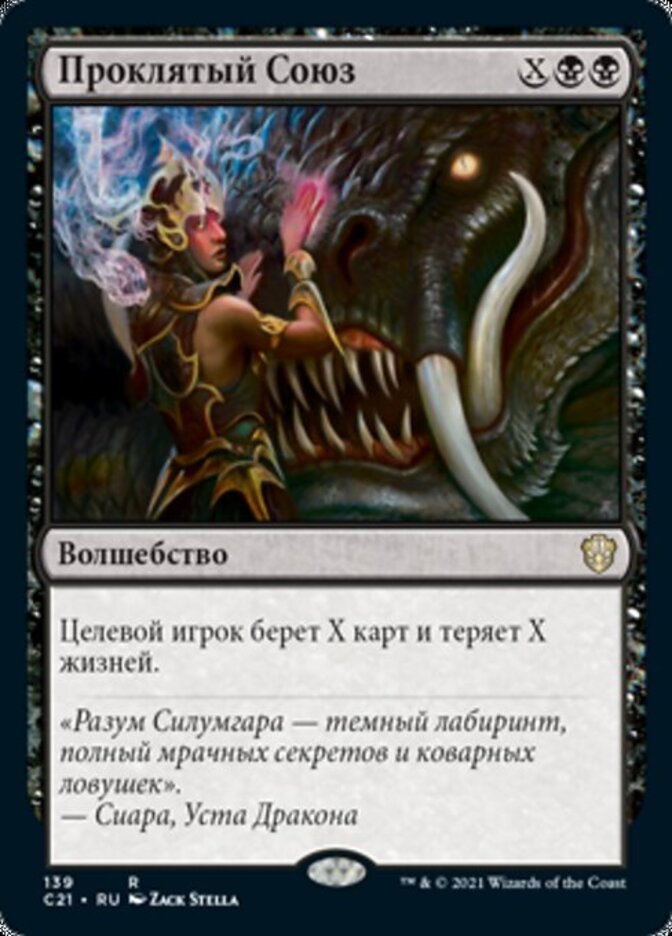 | Rules | Target player draws X cards and loses X life. |