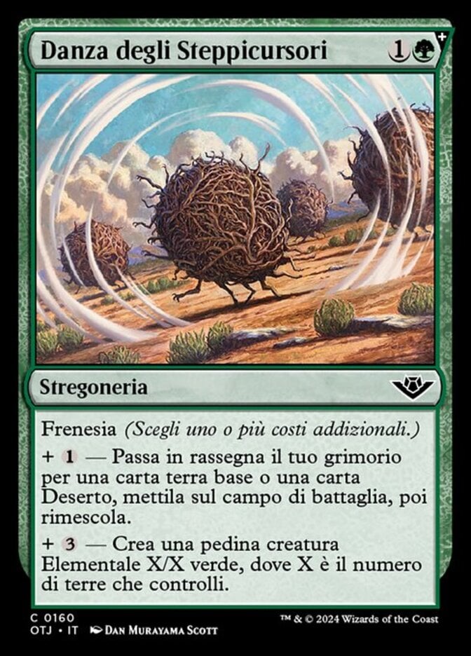 | Rules | Spree (Choose one or more additional costs.) + — Search your library for a basic land card or a Desert card, put it onto the battlefield, then shuffle. + — Create an X/X green Elemental creature token, where X is the number of lands you control. |