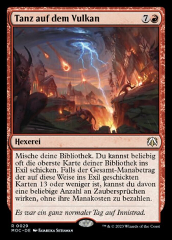 | Rules | Shuffle your library. As many times as you choose, you may exile the top card of your library. If the total mana value of the cards exiled this way is 13 or less, you may cast any number of spells from among those cards without paying their mana costs. |