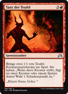 | Rules | Create two 1/1 red Devil creature tokens. They have "When this creature dies, it deals 1 damage to any target." |