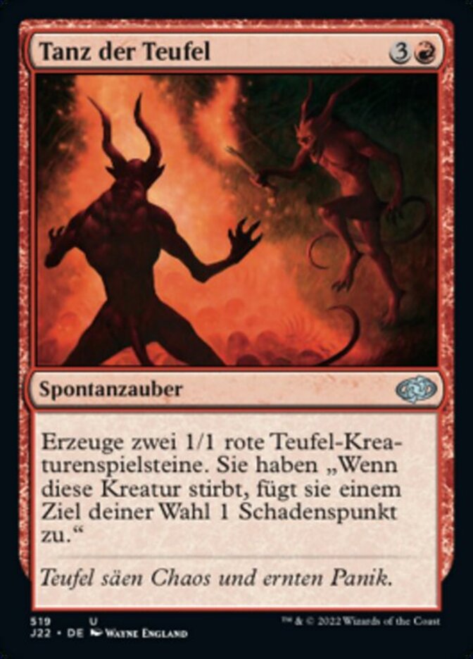| Rules | Create two 1/1 red Devil creature tokens. They have "When this creature dies, it deals 1 damage to any target." |