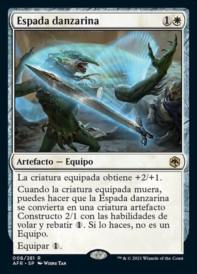 | Rules | Equipped creature gets +2/+1. When equipped creature dies, you may have Dancing Sword become a 2/1 Construct artifact creature with flying and ward . If you do, it isn't an Equipment. Equip |