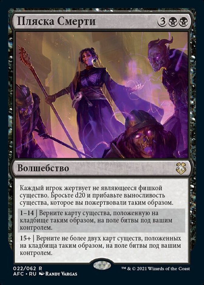 | Rules | Each player sacrifices a nontoken creature. Roll a d20 and add the toughness of the creature you sacrificed this way. 1—14 | Return a creature card put into a graveyard this way to the battlefield under your control. 15+ | Return up to two creature cards put into graveyards this way to the battlefield under your control. |