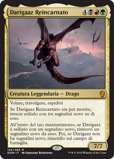 | Rules | Flying, trample, haste If Darigaaz Reincarnated would die, instead exile it with three egg counters on it. At the beginning of your upkeep, if Darigaaz is exiled with an egg counter on it, remove an egg counter from it. Then if Darigaaz has no egg counters on it, return it to the battlefield. |