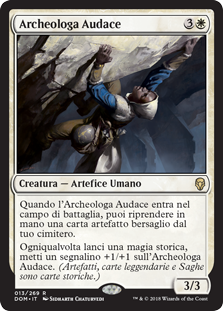 | Rules | When Daring Archaeologist enters the battlefield, you may return target artifact card from your graveyard to your hand. Whenever you cast a historic spell, put a +1/+1 counter on Daring Archaeologist. (Artifacts, legendaries, and Sagas are historic.) |