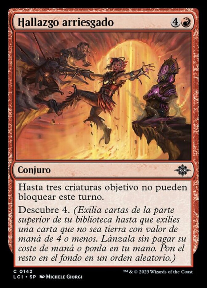 | Rules | Up to three target creatures can't block this turn. Discover 4. (Exile cards from the top of your library until you exile a nonland card with mana value 4 or less. Cast it without paying its mana cost or put it into your hand. Put the rest on the bottom in a random order.) |