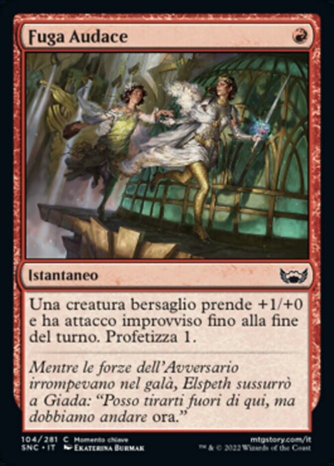 | Flavor | As the Adversary's forces descended upon the gala, Elspeth whispered to Giada, "I can get you out of here, but we have to go now." |