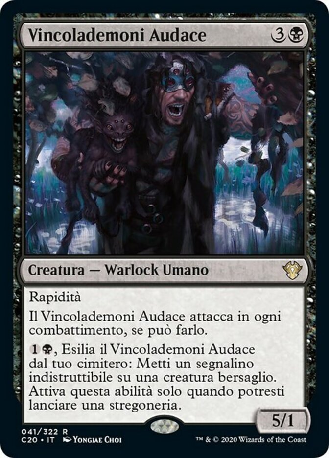 | Rules | Haste Daring Fiendbonder attacks each combat if able. , Exile Daring Fiendbonder from your graveyard: Put an indestructible counter on target creature. Activate only as a sorcery. |